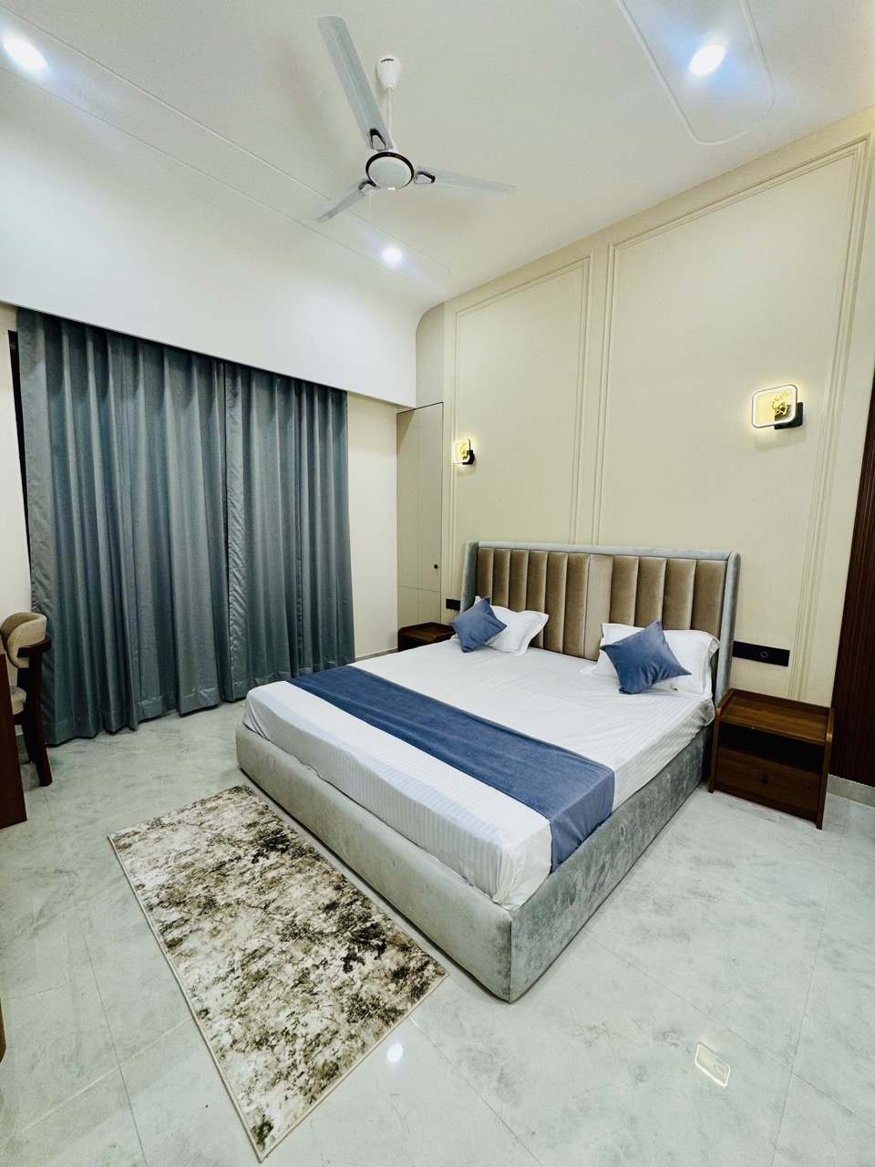 This spacious 2 BHK residence is thoughtfully designed for large families and group stays, offering the perfect balance of comfort, privacy, and modern living. Each of the five well-appointed bedrooms comes with an attached bathroom, ensuring convenience and personal space for every guest. The residence features a generously sized living and dining area, ideal for relaxing, socializing, or spending quality time together. Contemporary interiors, ample natural light, and large windows enhance the overall ambience, while the refreshing avenue view adds a calm and pleasant touch to your stay. With modern amenities and a home-like atmosphere, this 2 BHK is an excellent choice for both short and extended stays.